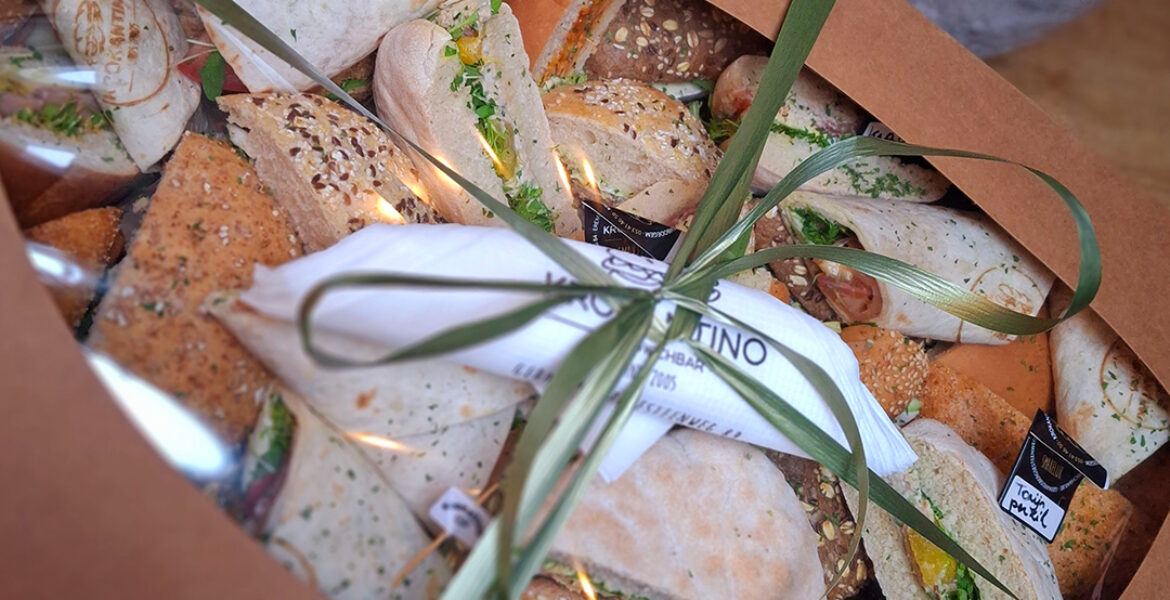Welkom bij Krokantino Sandwichbar te Erembodegem. Met liefde en passie zorgen wij voor een gezond ontbijt, verse salades, verse belegde broodjes, wraps, panini’s , dagverse soep, burgers en nog veel meer. Probeer ook zeker onze suggesties eens! Voor al uw feesten & bijeenkomsten zijn er feestelijk verpakte Vikingbroodjes, deluxe brood & tapas planken.